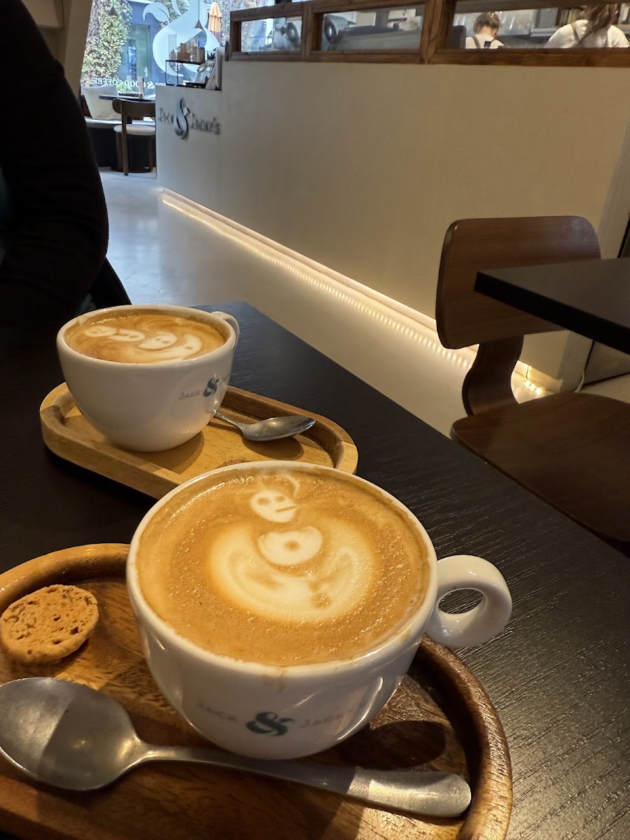 Jack & Jacky's is also known for its delightful beverages, including the Dirty Chai Latte and the Golden Latte. The Dirty Chai Latte blends the bold flavors of espresso and spiced chai, making it the perfect pick-me-up. On the other hand, the Golden Latte, with its soothing blend of turmeric and cinnamon, is a great option for those looking to unwind with something a little different.